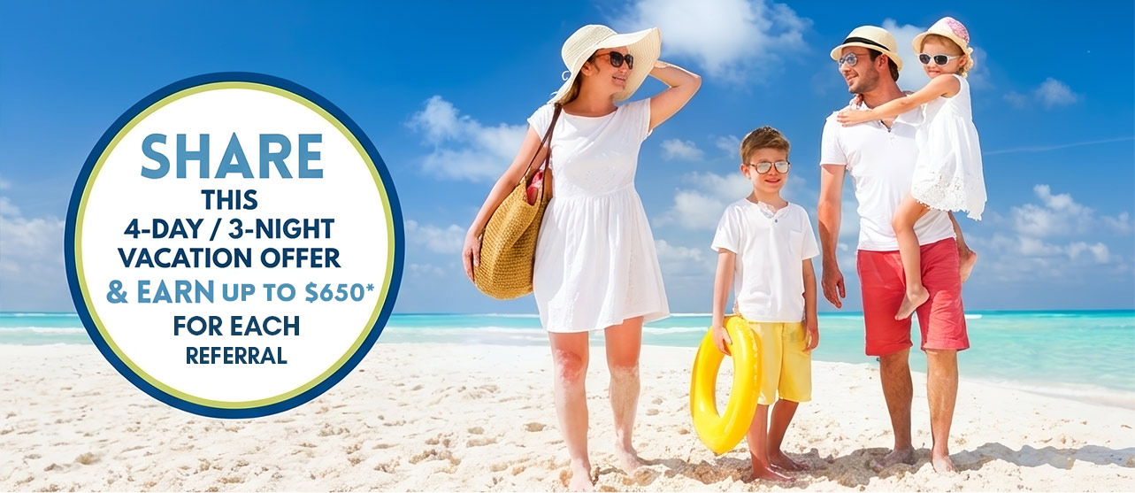 Your referrals get a 4-Day/ 3-Night getaway at Westgate Resorts from $99*